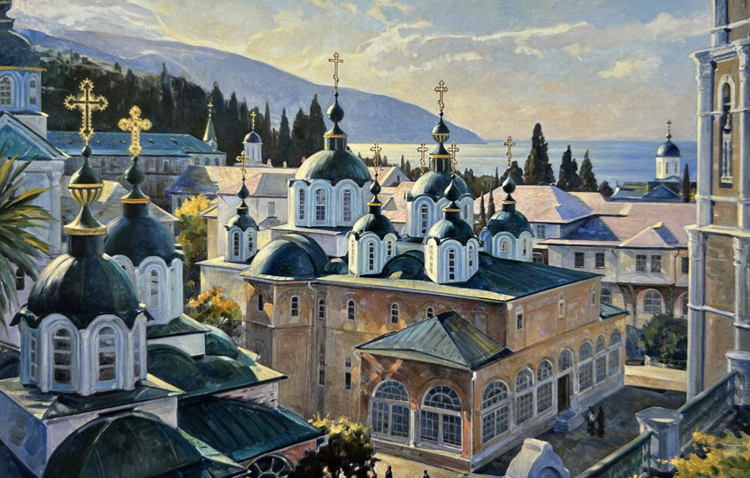В 2013 году, когда приезжал Патриарх Кирилл, это был первый его приезд на Афон в качестве Патриарха, я написал четыре картины для большого монастырского зала приемов. Репродукции включены в книгу «Тихая радость Афона…». Это виды Свято-Пантелеимонова русского монастыря днем и ночью, а также виды скита Ксилургу и Старого Русика. Считаю, что так меня подводила Богородица к росписи храма на Старом Русике. Я побывал на этом историческом месте в первый же свой приезд на Афон.