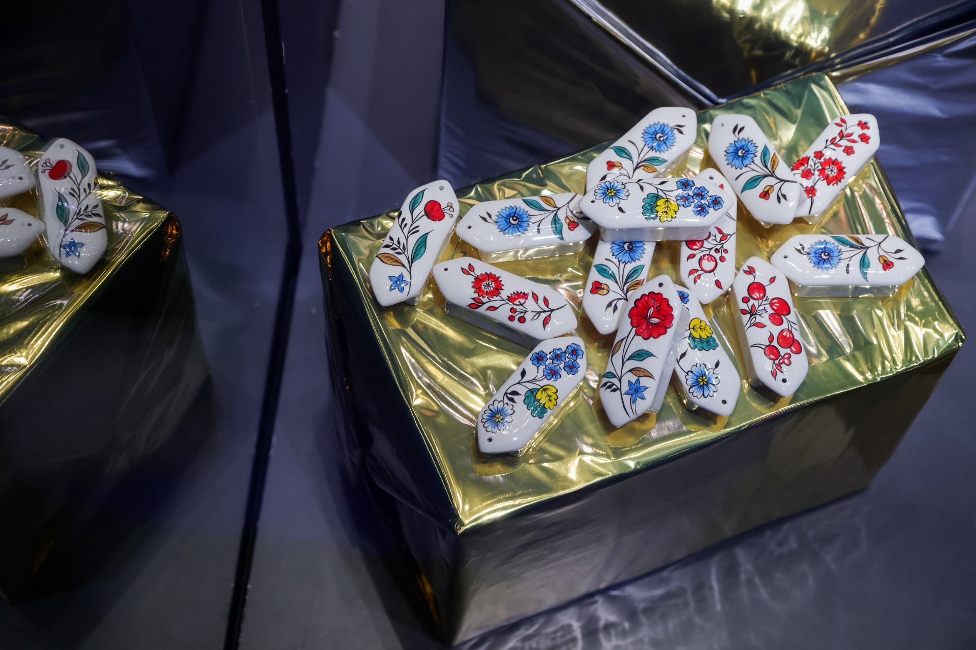 Но, пожалуй, самый узнаваемый русский сувенир — матрёшка, без неё на выставке, конечно, не обошлось, тут она предстаёт не просто как сувенир, а как мощный символ, возникший в конце XIX века и моментально покоривший мир, став визитной карточкой России. Её структура, по замыслу создателей (кукла внутри куклы), воплощает идею преемственности поколений и единства семьи, загадочность русской души (внешнее — внутреннее, явное — скрытое); цикличность жизни и этапы духовного развития.