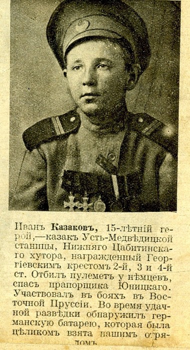Военная хроника тех лет пестрит сообщениями и рассказами о юных добровольцах, их подвигах на полях сражений, ранениях и боевых наградах. И в детских книжках и журналах Первой мировой мальчики-герои окружены особым ореолом. На войне они быстро становились взрослыми, стойко перенося окопные страдания и лишения, голод, холод и смерть боевых друзей. Проявляя чудеса самопожертвования и героизма, в свои 12-15 лет они нередко становились Георгиевскими кавалерами.