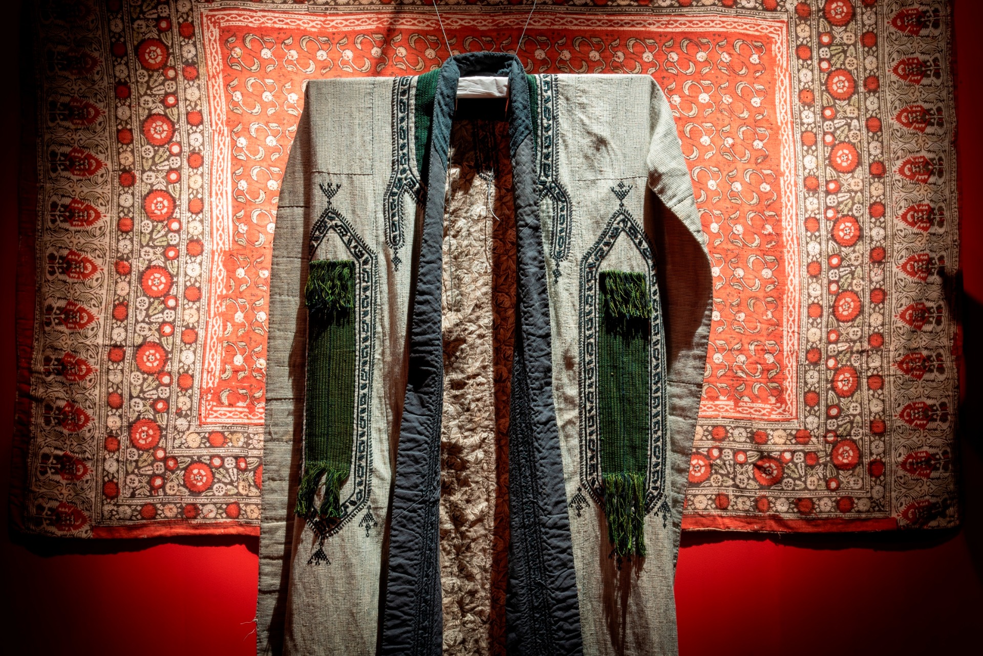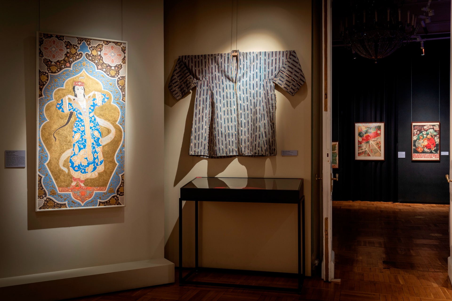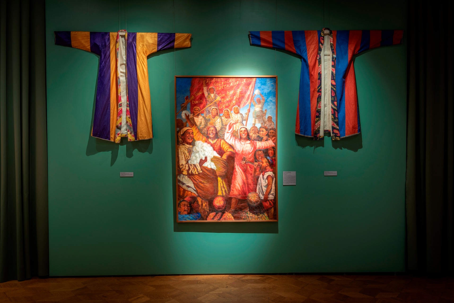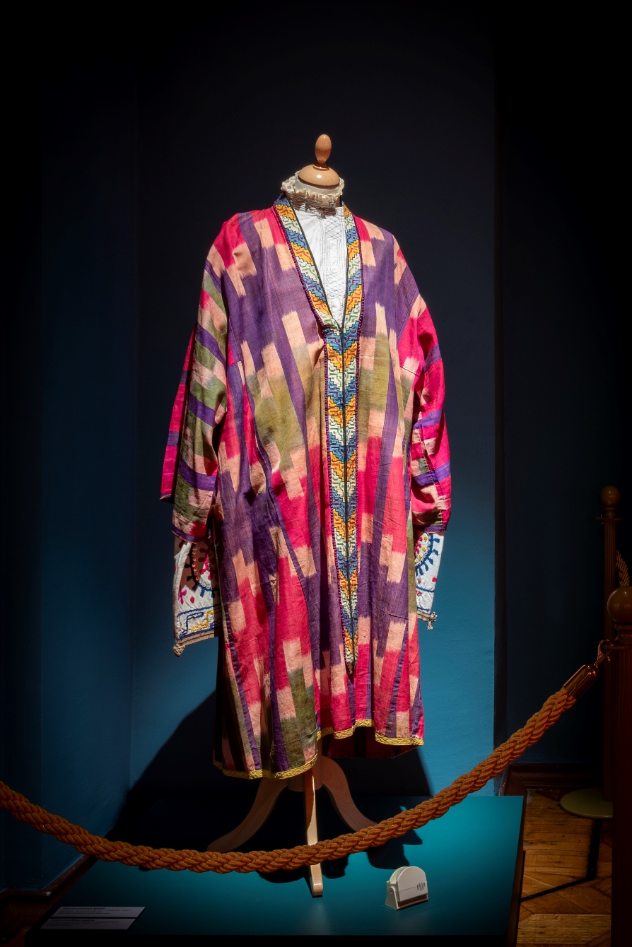 Завершает выставку современный взгляд на тему – халаты от ташкентского дизайнера Диляры Каиповой, созданные по традиционным технологиям. Ткань для них выткали мастера Маргилана (центра текстиля в Ферганской долине Узбекистана) в традиционной технике иката по авторским эскизам Каиповой.