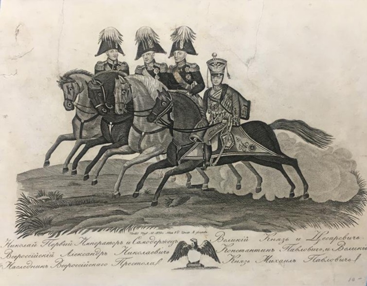 Здесь же отражён период междуцарствия, политической неопределенности, последовавшей за смертью Александра I. На 14 декабря 1825 года была назначена вторая присяга – «переприсяга» Николаю I. Этим и воспользовались декабристы для выступления на Сенатской площади.