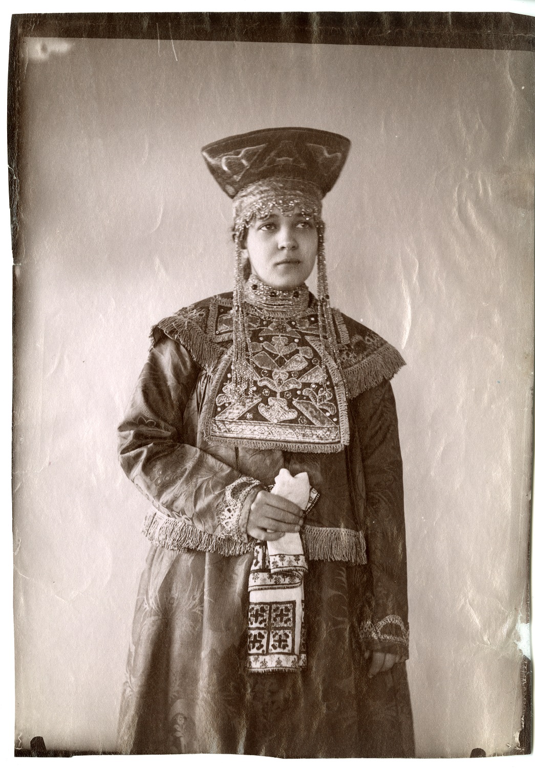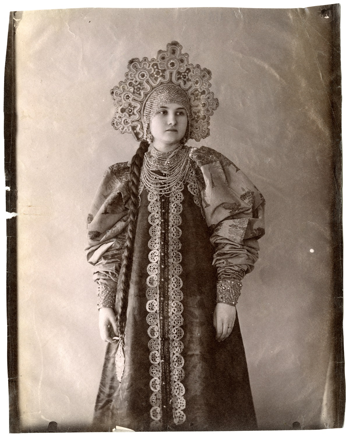 «Собрание русской старины» – это коллекция из нескольких тысяч образцов праздничной народной одежды, головных уборов, украшений, вышивки, ткачества, набойки, золотного кружева, собранных Натальей Леонидовной Шабельской в конце XIX века. «Русской стариной» тогда называли предметы быта и одежду допетровского времени, традиционные особенности которых к началу XX века сохранились только в крестьянской культуре. Для просвещенного общества рубежа веков они представляли собой зримое воплощение национальной самобытности и народных представлений о красоте.