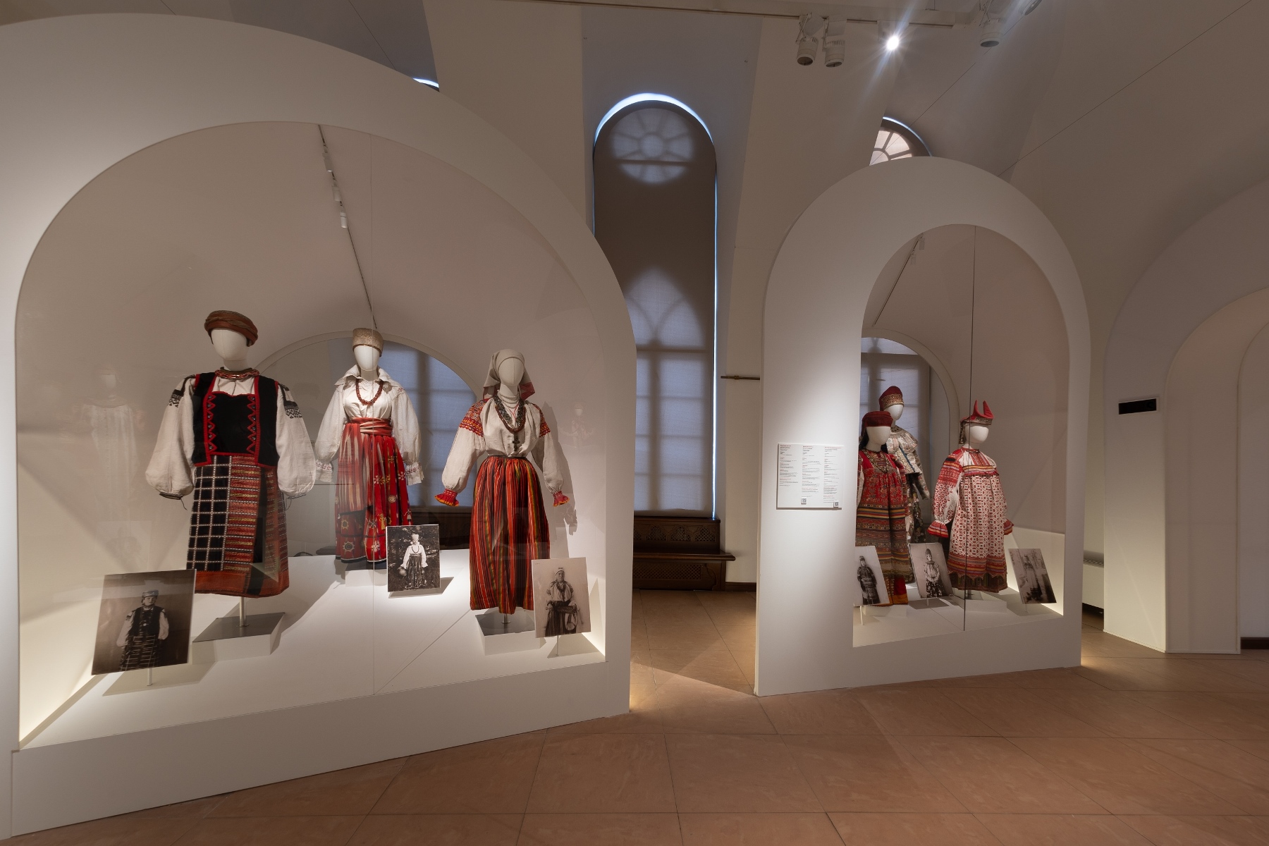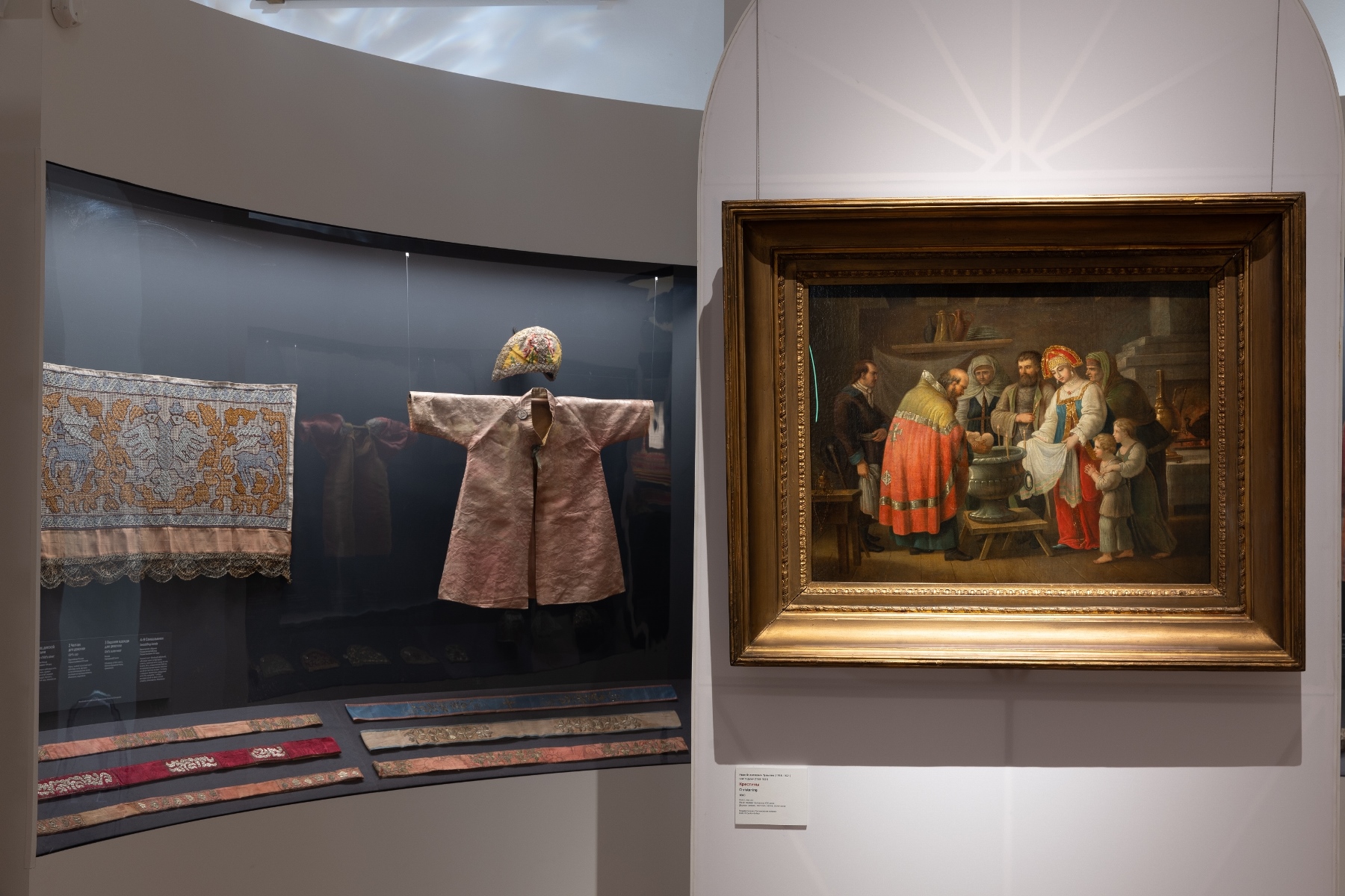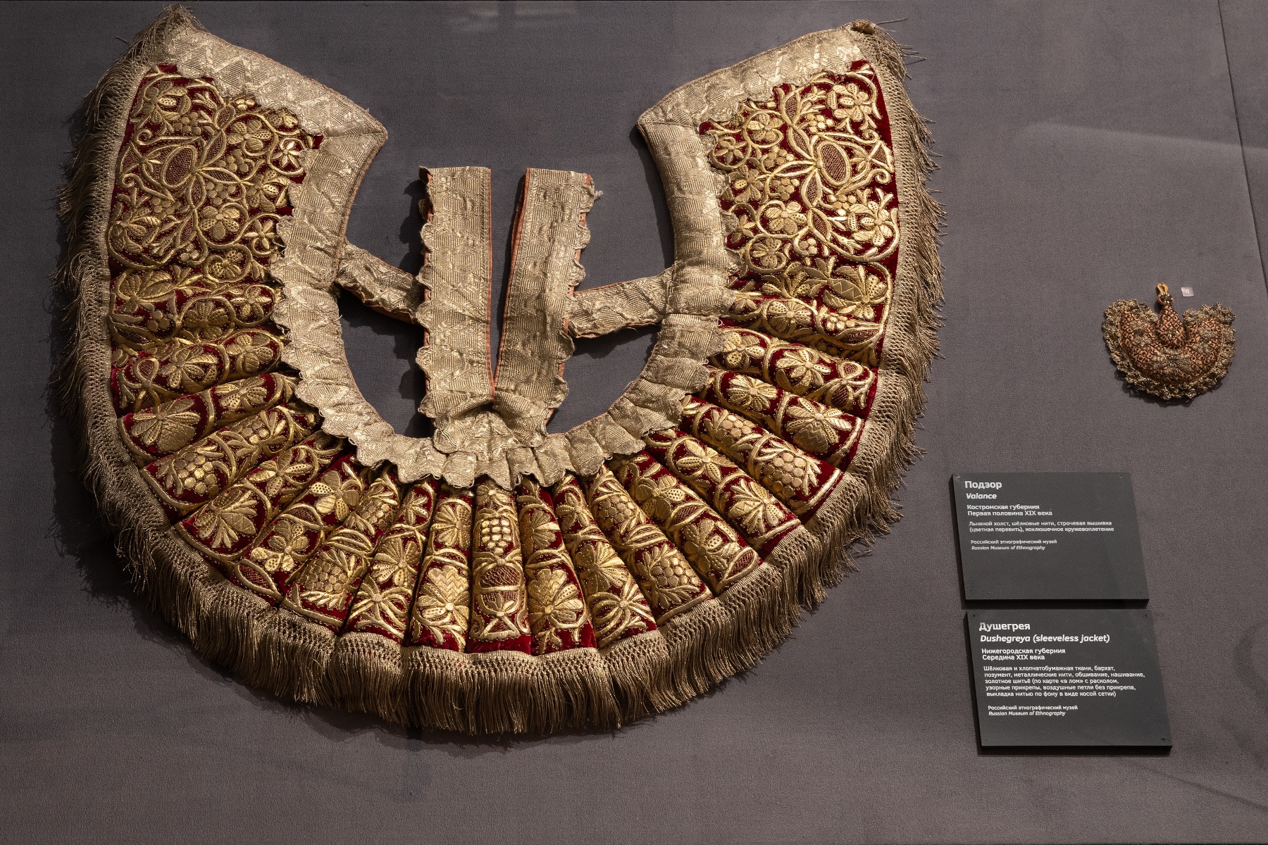 Экспозиция занимает десять залов Хлебного дома, и в каждом по своему раскрывается тема русского костюма, – от разнообразия головных уборов и украшений до богатства материалов и приемов народного рукоделия; от роли предметов в обрядах свадьбы и крещения до красоты праздничного костюма разных регионов России.