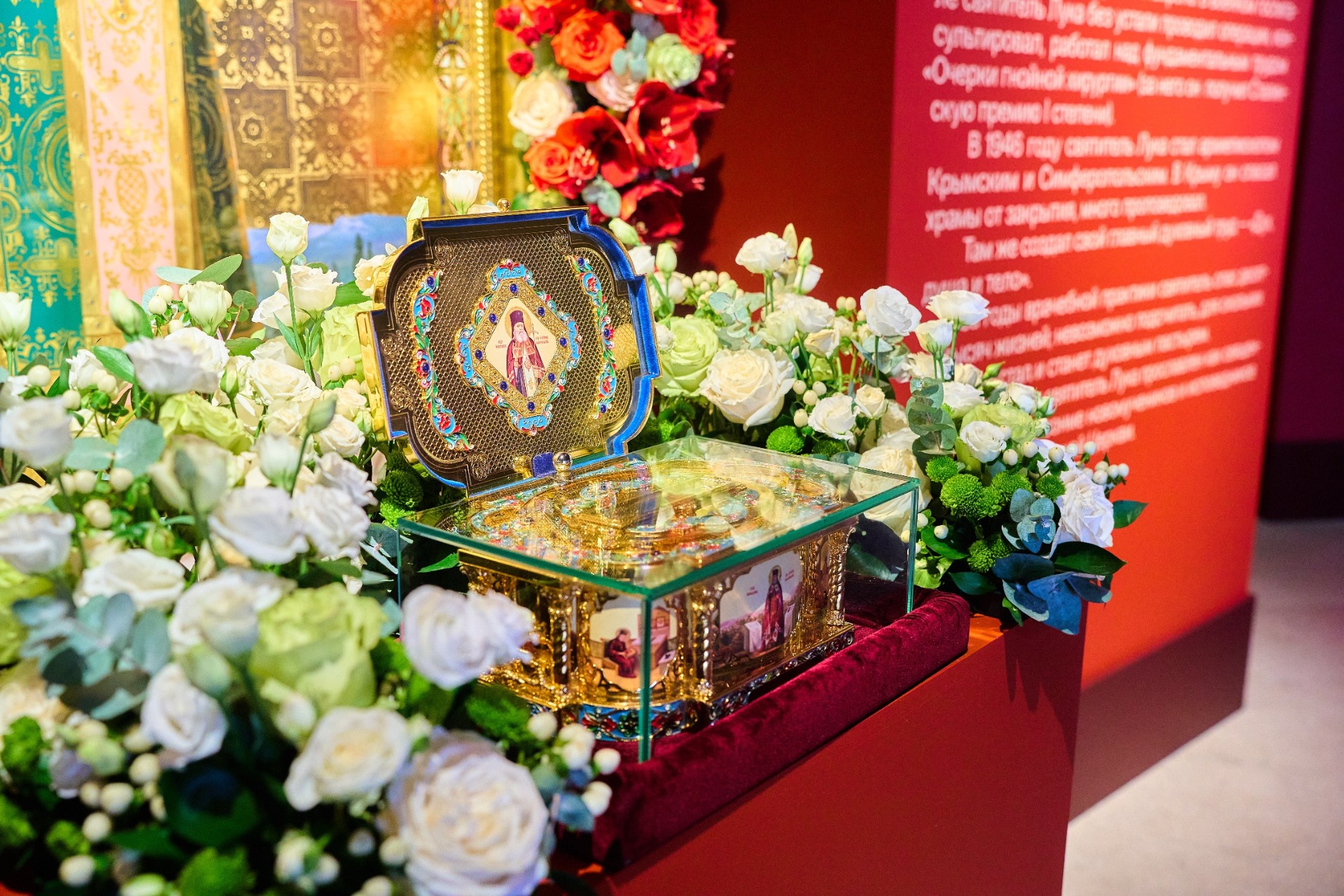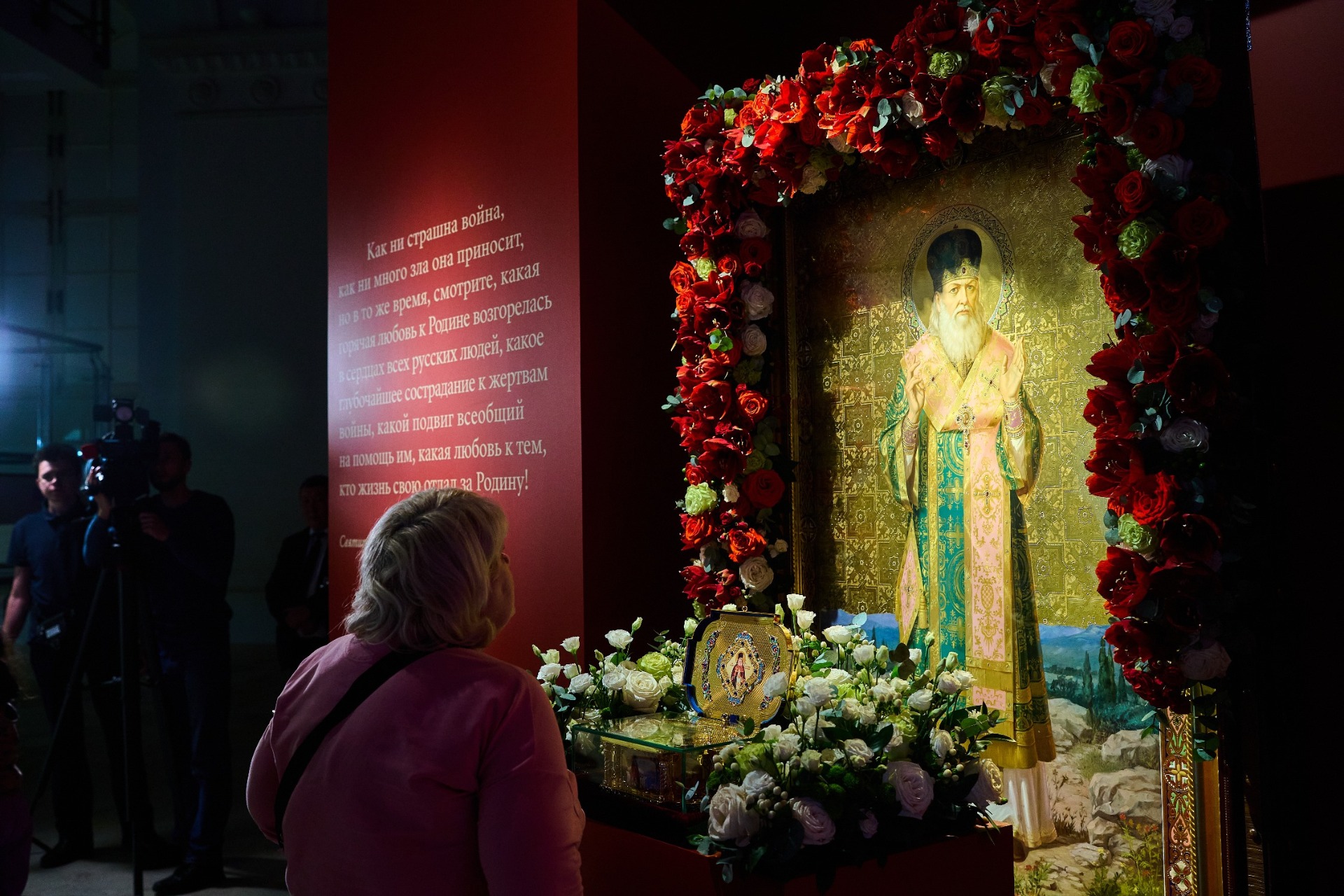 Особую значимость экспозиции придает послание Патриаршего Местоблюстителя, митрополита Московского и Коломенского Сергия (Страгородского) с благословением защитникам Родины. А по благословению Святейшего Патриарха Московского и всея Руси Кирилла на выставку доставлена икона святителя Луки исповедника (Войно-Ясенецкого) и ковчег с его святыми мощами.