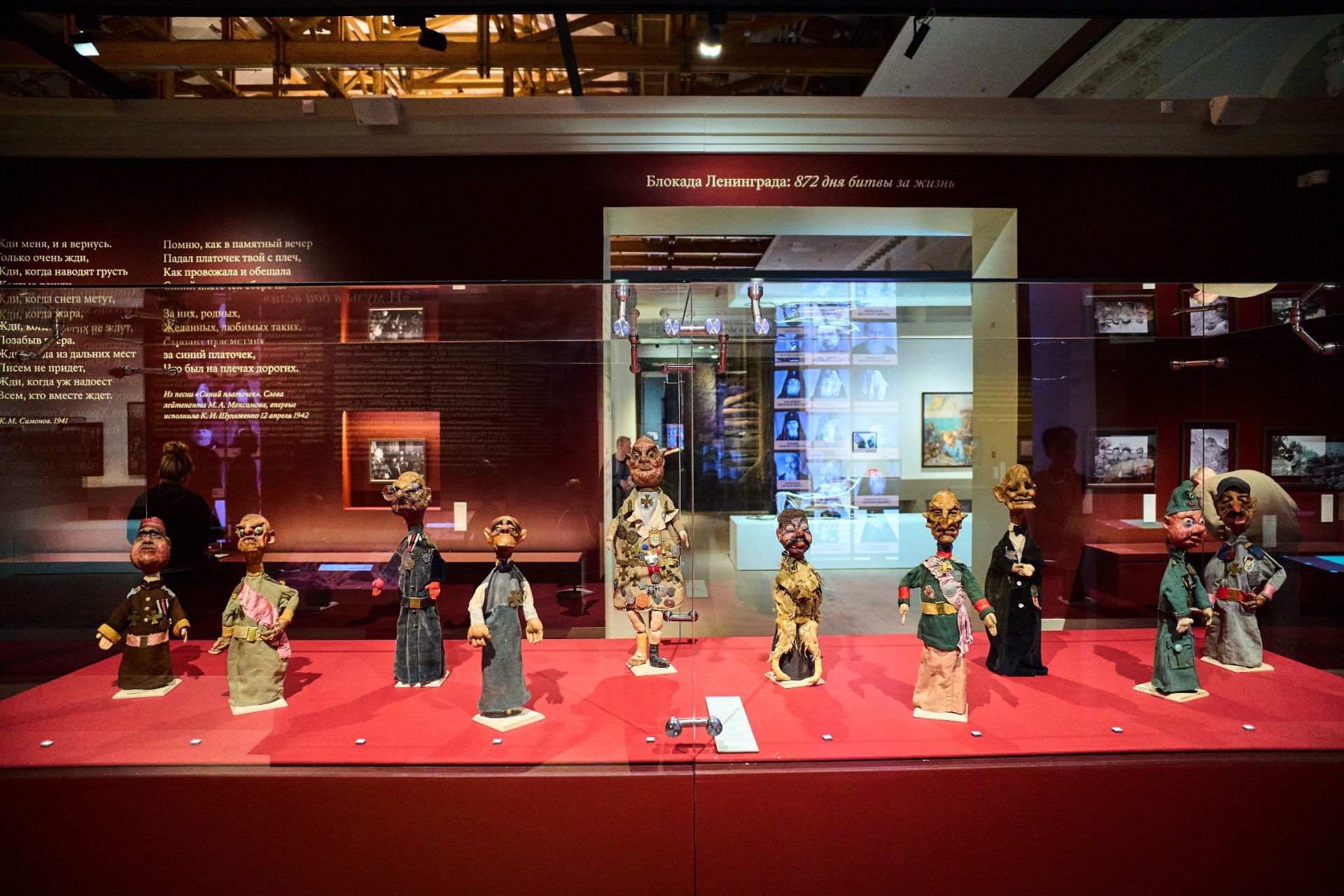 Среди наиболее значимых экспонатов — директива Наркома обороны СССР № 1 о приведении войск в боевую готовность; постановление Президиума Верховного Совета СССР о создании Государственного комитета обороны; «Блокадный дневник» Ольги Бергольц; меч в ножнах, подаренный королем Великобритании Георгом VI гражданам Сталинграда в 1943 году; черновик личного послания И.В. Сталина президенту США Ф. Рузвельту с критикой позиции союзников в отношении открытия второго фронта в Европе; автограф речи маршала Г.К. Жукова, которую он произнес на Параде Победы 24 июня 1945 года; парадный мундир и награды периода войны Верховного Главнокомандующего Советского Союза И.В. Сталина; подлинный Акт военной капитуляции Германии от 8 мая 1945 года и Акт о капитуляции Японии.