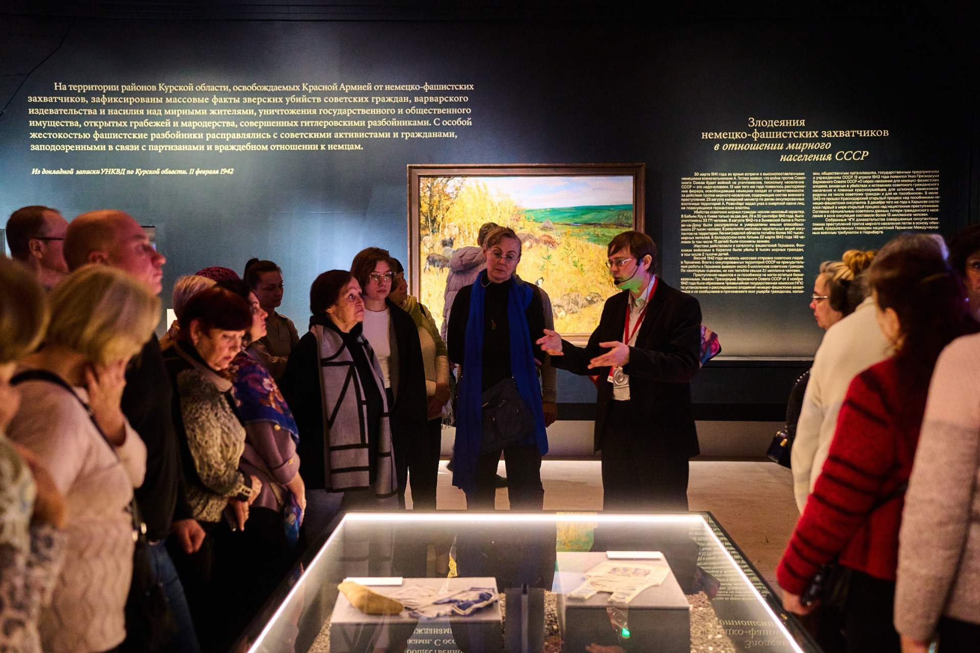 Посетители могут увидеть также личные вещи героев Великой Отечественной войны, участников подпольной антифашисткой организации «Молодая гвардия»: записную книжку Зои Космодемьянской, наградной лист летчика Алексея Маресьева, шинель снайпера Людмилы Павличенко...
