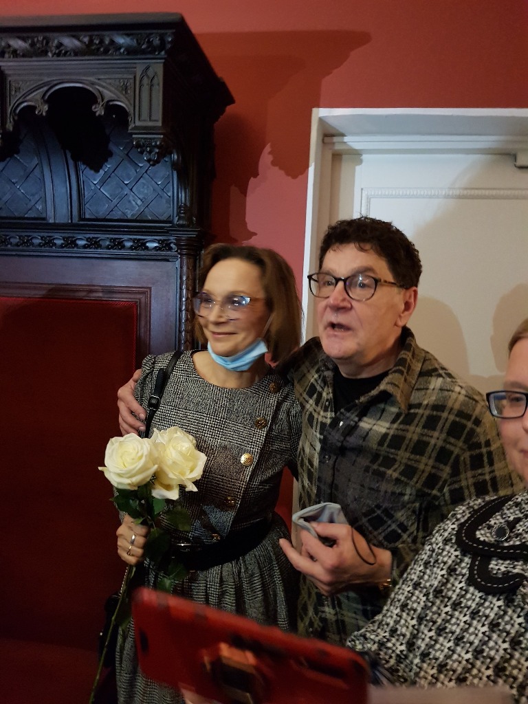 Обстоятельную экскурсию по фойе с портретами выдающихся вахтанговцев, работавших в театре во второй половине прошлого века, провел весельчак Нонанкур из «Соломенной шляпки» – Михаил Васьков.Ну а какой разговор об артистах без театральных баек?Эпиграфом к ним можно взять афоризм Анатолия Кацинского, актера, художника и поэта: «Когда к вам придет старость, не надо пугаться, надо улыбнуться и сказать: «Здравствуй, дорогая, а ведь могли и не встретиться…».