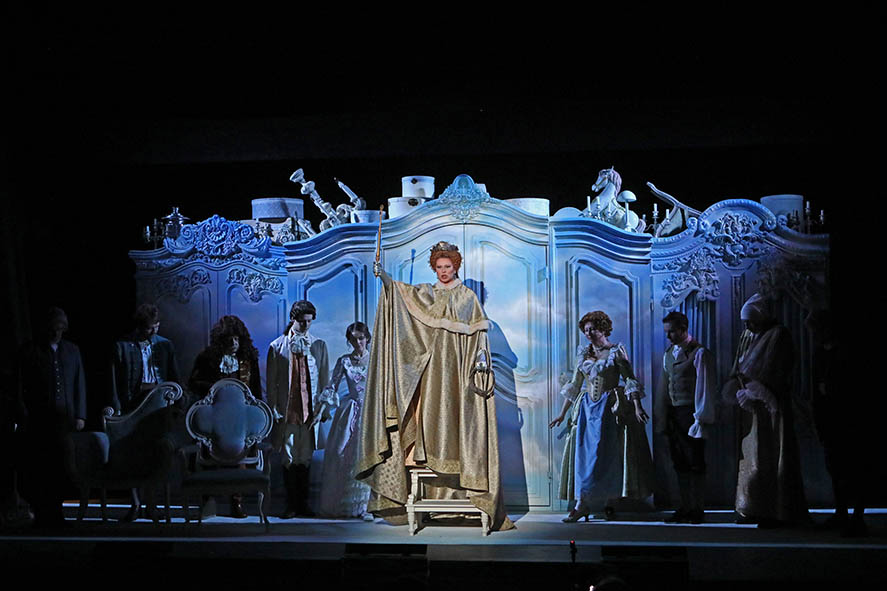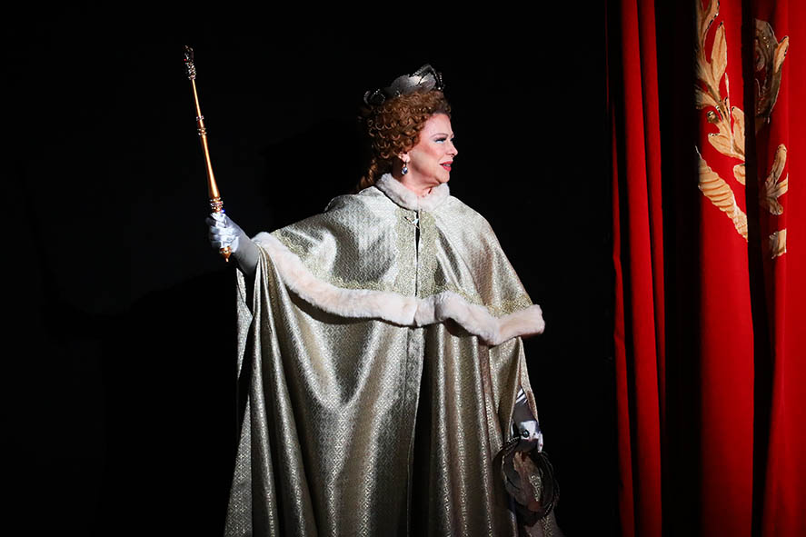 В эпилоге императрица – на фоне пламенеющего занавеса с собственным вензелем – появится ещё раз, сойдёт с пьедестала, и вместе с подданными будет праздновать их торжества.