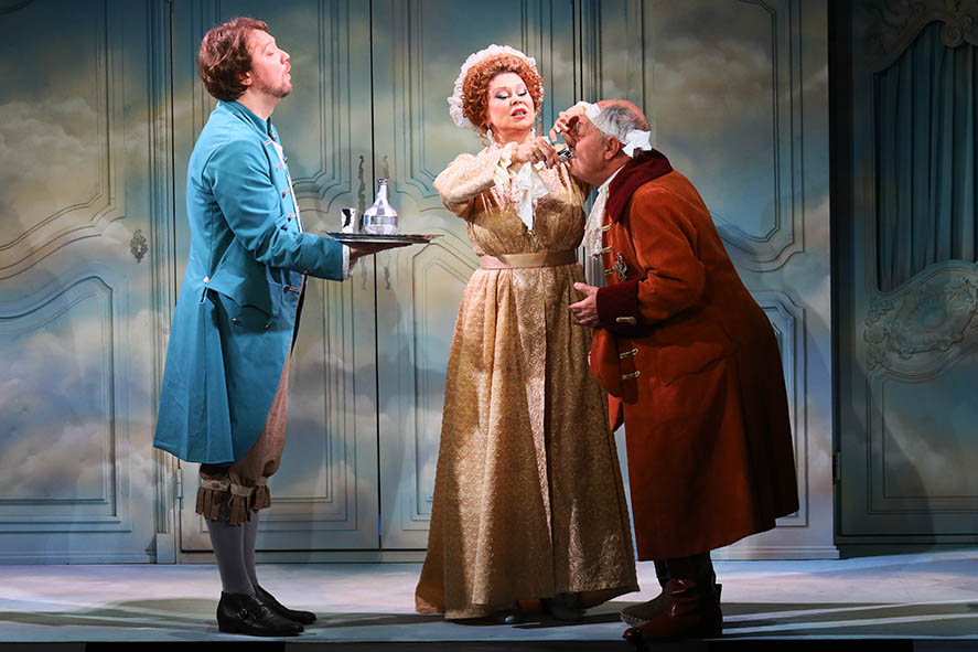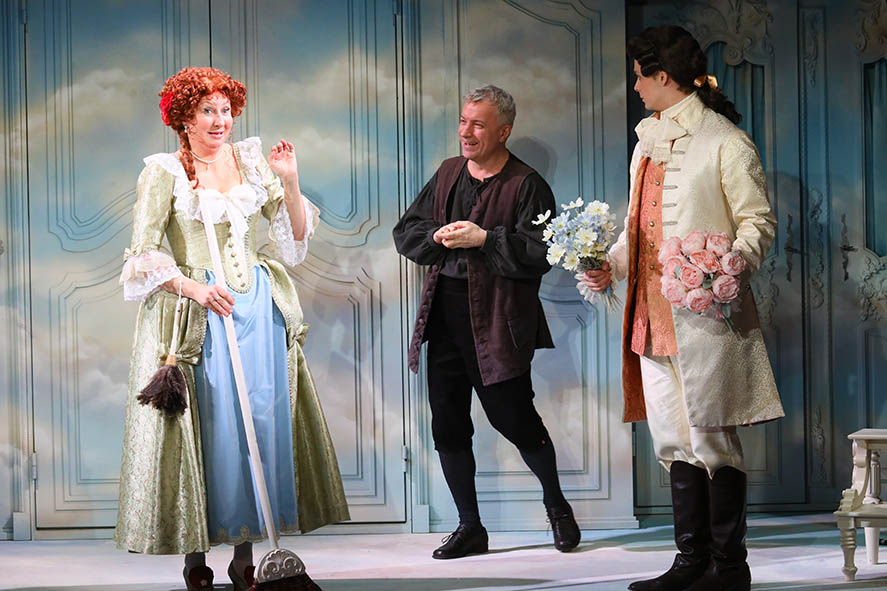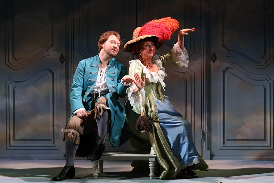 Вся атмосфера мгновенно настраивает зрителей на существование в пространстве XVIII века. А когда персонажи начинают разговаривать, и звучит непривычная, витиеватая речь, – одна фраза жениха Добрина (Кирилл Шварценберг) «Я ласкаюсь её увидеть», означающая, что он рад встретиться с Прелестой, чего стоит, – мы становимся участниками спектакля.