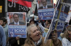 За пост главы государства в этот раз боролись шесть кандидатов. После обработки 90,6% бюллетеней представитель правящей коалиции «Фронт за победу» и губернатор провинции Буэнос-Айрес Даниэль Сциоли набрал 36,2% голосов, а оппозиционый кандидат, лидер либерально-консервативной партии «Республиканское предложение» и мэр аргентинской столицы Маурисио Макри – 34,9%. Кандидат от оппозиционной партии Серхио Масса набрал 21,2%.