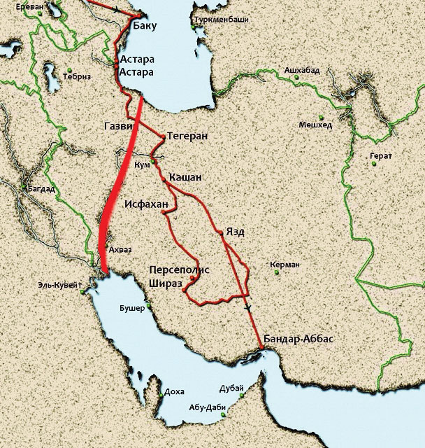 Что касается проекта иранской трассы, то она предусмотрена в западном и юго—западном Иране — от иранского порта Энзели (Южный Каспий), далее по рекам Сефидруд — Керхе — Нахр-эль-Кахла с впадением последней в Шатт-эль-Араб. Это широкий (приграничный с Ираком) речной фарватер для судов смешанного плавания «река — море», впадающий в Персидский залив.
