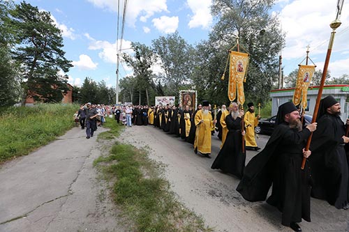 Список чудотворной Святогорской иконы Пресвятой Богородицы был поставлен перед кафедрой посреди храма. Владыка Елисей обратился к присутствующим с архипастырским словом. Поблагодарил за понесенные труды во время этого Крестного хода как немалого подвига духовного, утешив, что Господь обязательно вознаградит труждающихся на поприще такого подвига.