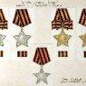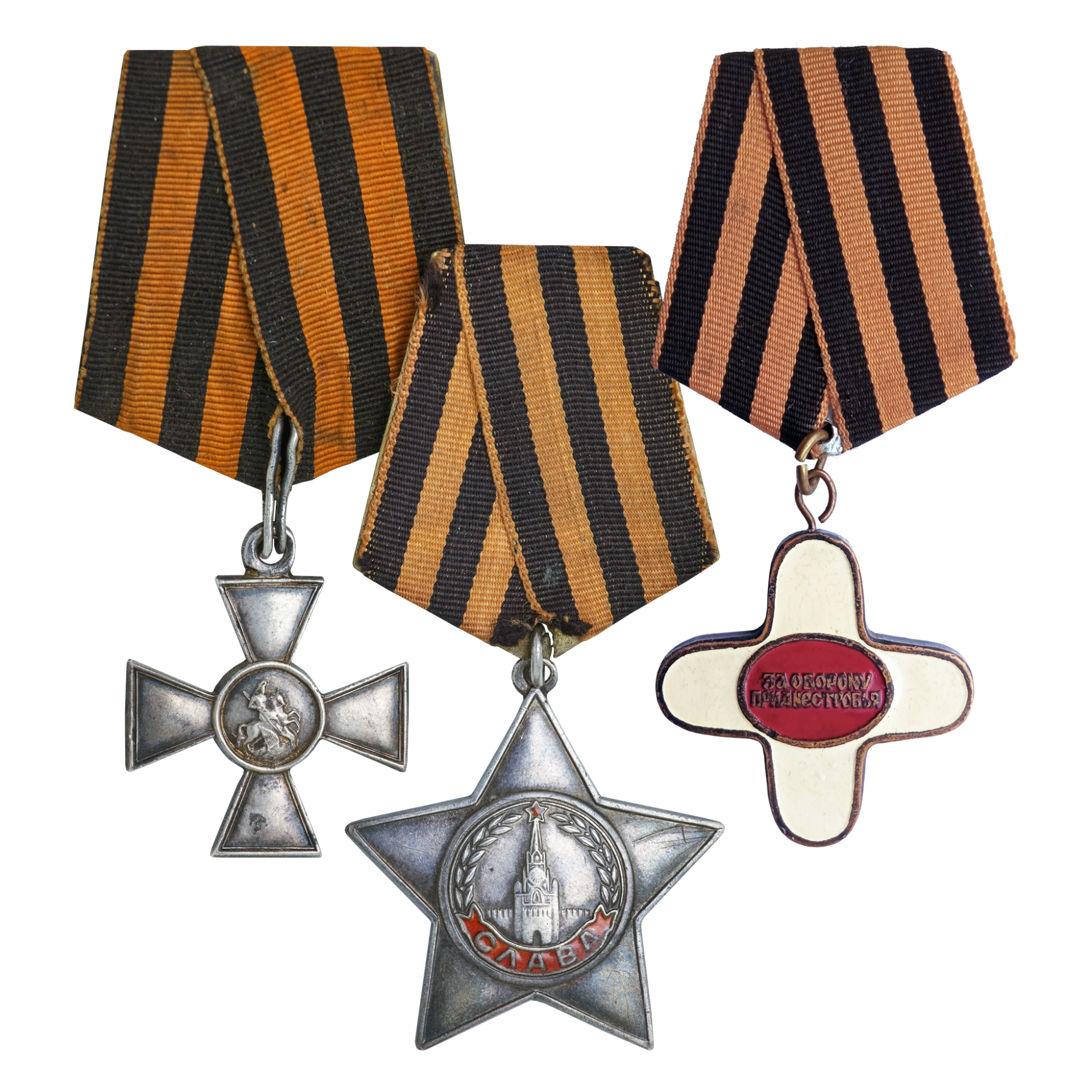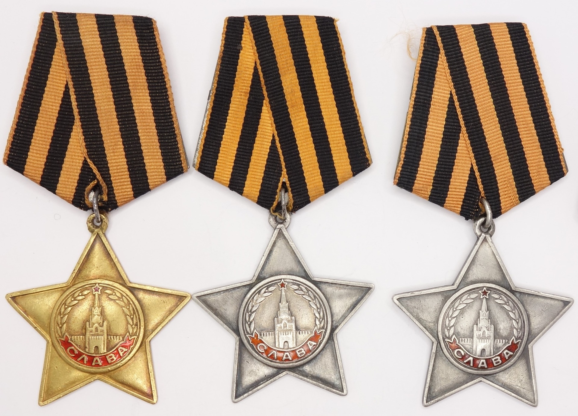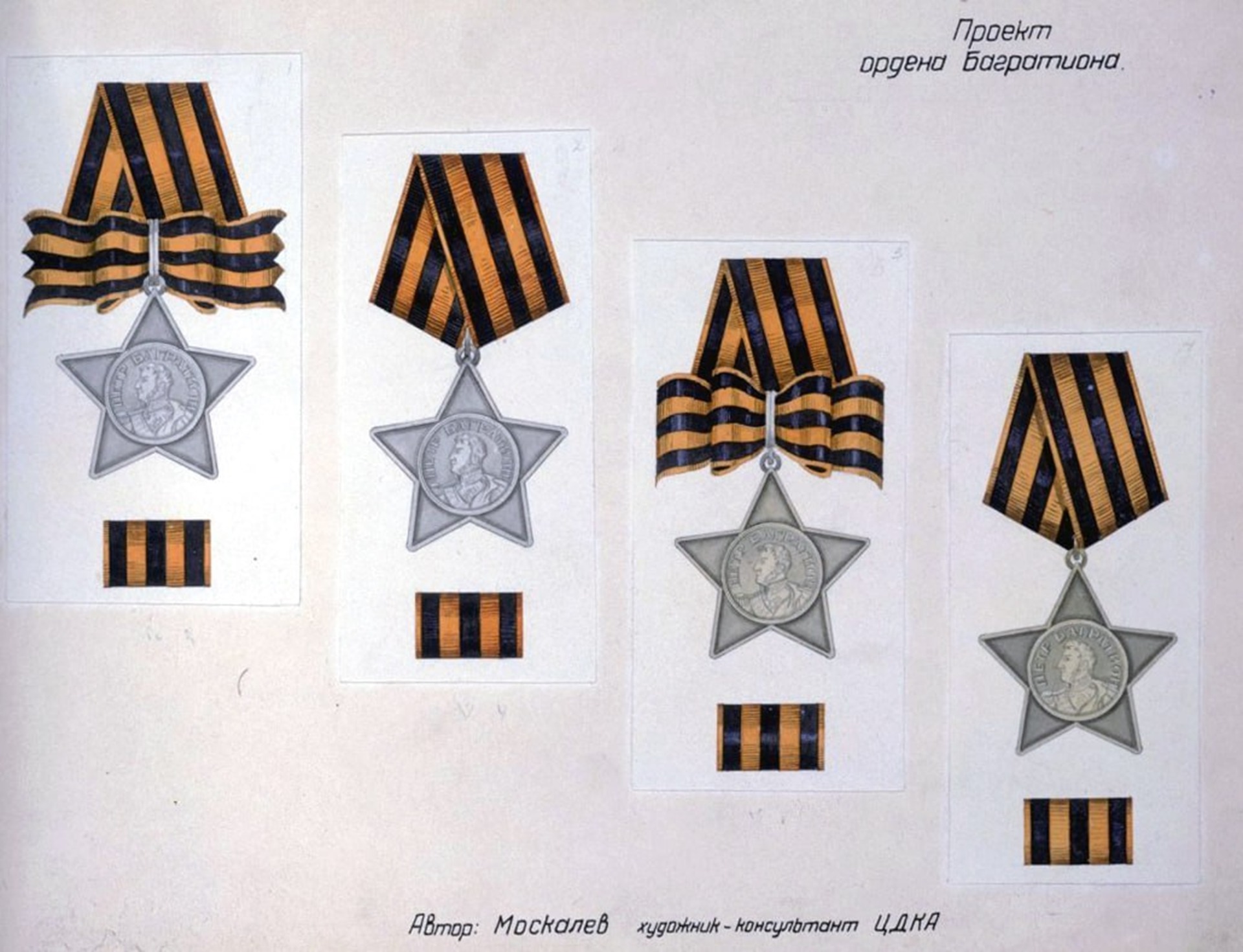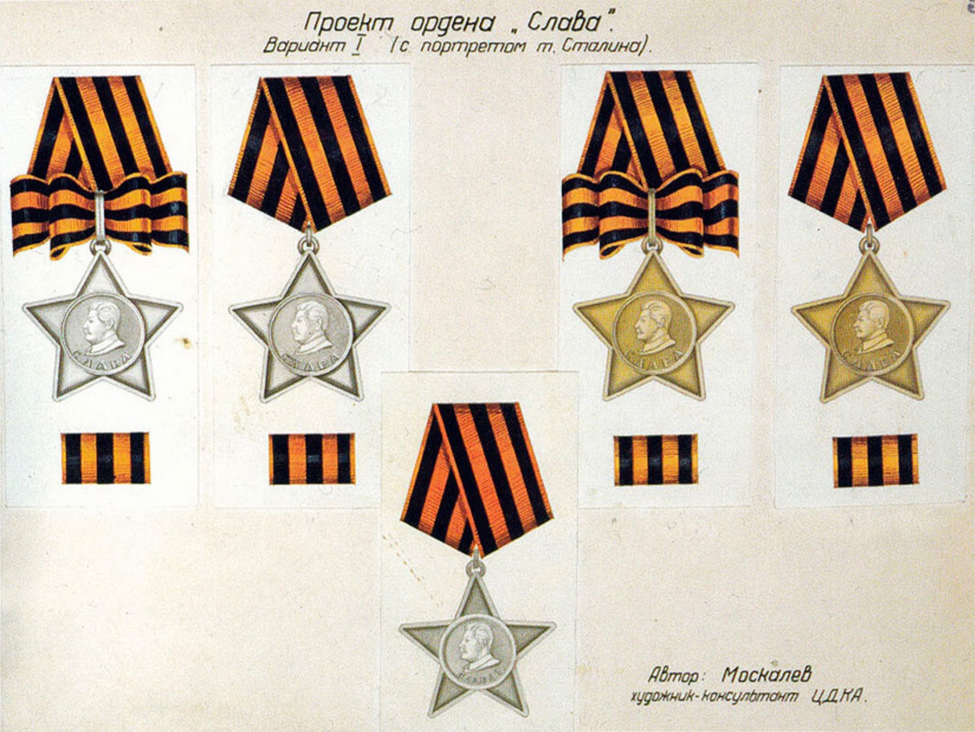 Именно эта уважаемая солдатская награда стала прототипом уже советского солдатского же Ордена Славы.Хотя и его история чуть сложнее. В архиве известного фалериста-исследователя Валерия Александровича Дурова (1943–2019) сохранились эскизы ордена…имени героя наполеоновский войн князя Петра Ивановича Багратиона. И на эскизе художника Николая Ивановича Москалёва (1897–1968) он, как и Георгиевский крест, был нарисован в четырёх степенях. Вместо героя, погибшего на Бородинском поле, награду было решено назватьиначе. Сталин одобрил расцветку ленты и сказал, что «победы не бывает без славы», и предложил именовать награду орденом Славы.А вместо портретов самого Сталина в медальонах, как и на высшем полководческом ордене «Победа», поместить изображение Спасской башни Московского Кремля. В итоге, орден Славы был разделён на три степени, как и ордена Суворова и Кутузова.