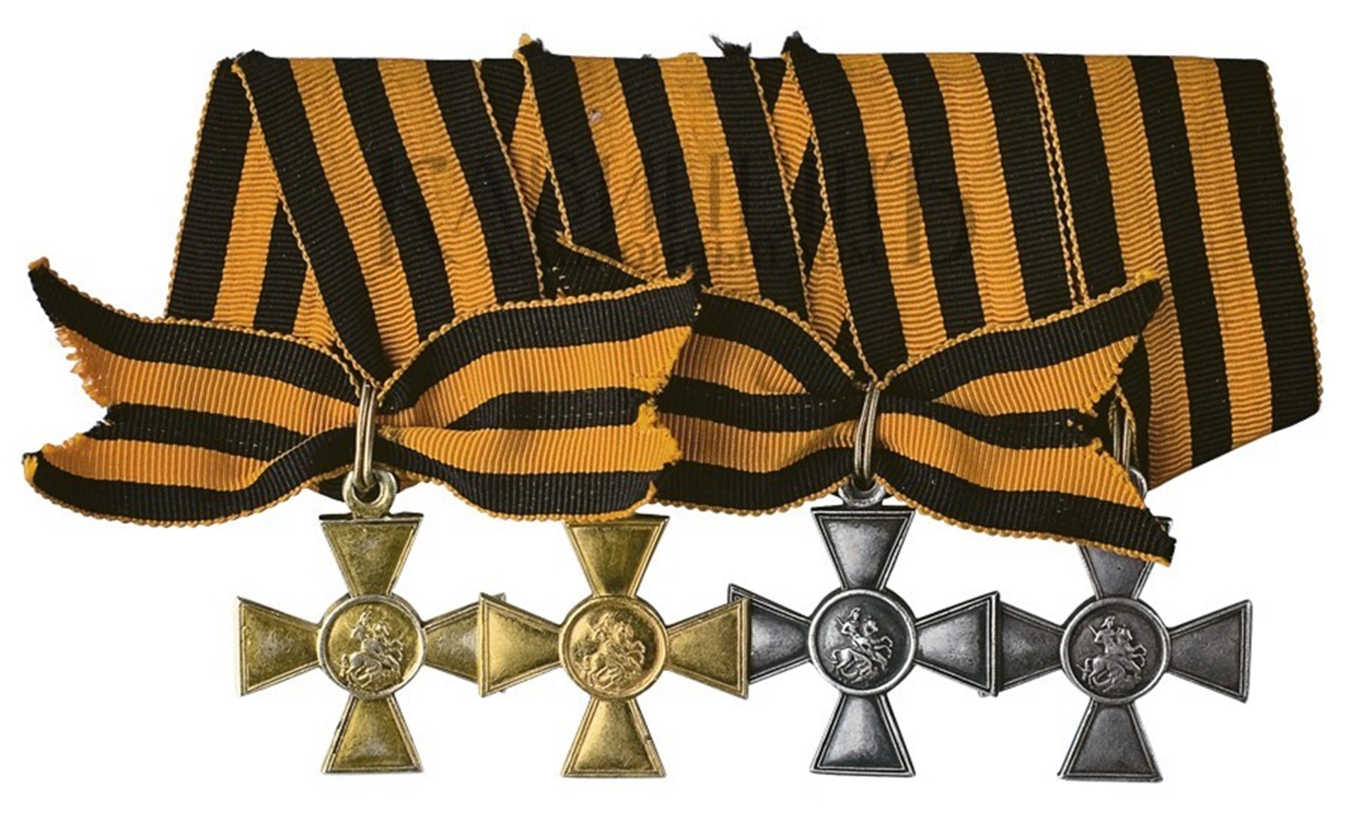 На Георгиевских, или комбинированных (Георгиевско-Андреевская, Георгиевско-Владимирская и т.п.) лентах вручались многие медали XVIII–XX веков. В 1807 году был учреждён и культовый Знак Отличия Военного Ордена для нижних чинов, официально названный в последнем статуте 1913 года Георгиевским крестом.