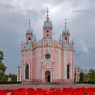 Капитульным (орденским) храмом Ордена Святого Георгия была Чесменская церковь в Петербурге(архитектор Ю.М. Фельтен). Вскоре после освящения храм был передан капитулу ордена Святого Георгия Победоносца. Некоторое время Чесменскую церковь именовали «Георгиевской».Екатерина II часто посещала храм, в котором для неё находилось царское место. Одним из обычаев орденских храмов было присутствие на обедне в день престольного праздника кавалеров соответствующего ордена в особых костюмах, а затем их совместная трапеза.В 1777–1778 годах на фарфоровом заводе обрусевшего английского купца Ф.Я. Гарднера был создан Георгиевский сервиз – самый первый из орденских сервизов. Ансамбли предназначались для торжественных приёмов кавалеров в Зимнем дворце. Традиция таких общих «рыцарских» трапез восходит к средневековой Европе, когда участники орденских объединений, украсив одежды особыми отличительными знаками, собирались на празднества. Предметы Георгиевского сервиза были рассчитаны на 80 кувертов.